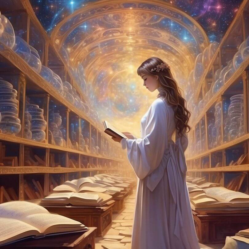 Imagínatelo como una gran biblioteca en la que cada libro representa un alma. Cada una de sus hojas es una encarnación, o un capítulo de una vida, una vivencia… y en su conjunto, todos los libros constituyen una basta consciencia cósmica colectiva, una gran memoria universal.